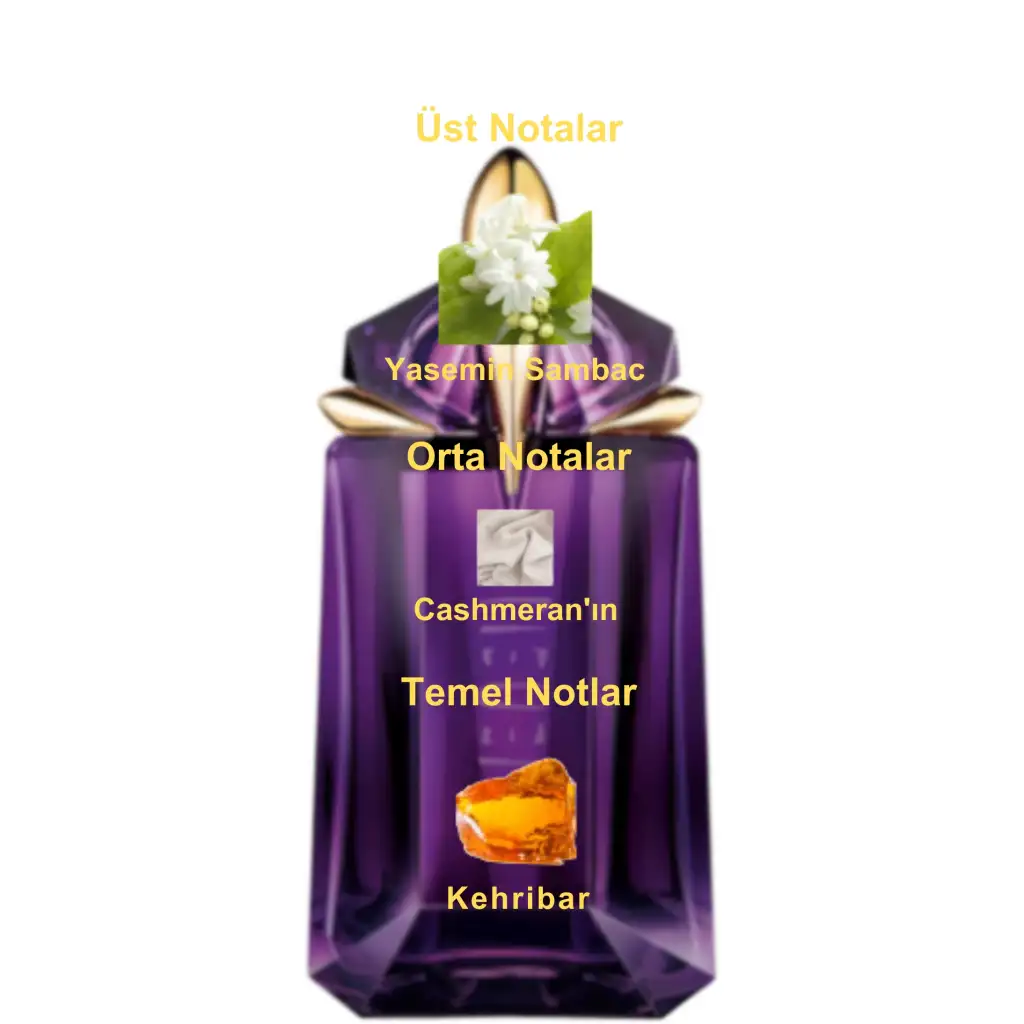 Alien by Mugler, kadınlar için Oryantal Odunsu bir koku. Alien 2005 yılında piyasaya sürüldü. Alien, Dominique Ropion ve Laurent Bruyere tarafından yaratıldı. Üst nota Yasemin Sambac; orta nota Kaşmeran; temel nota Kehribardır.
