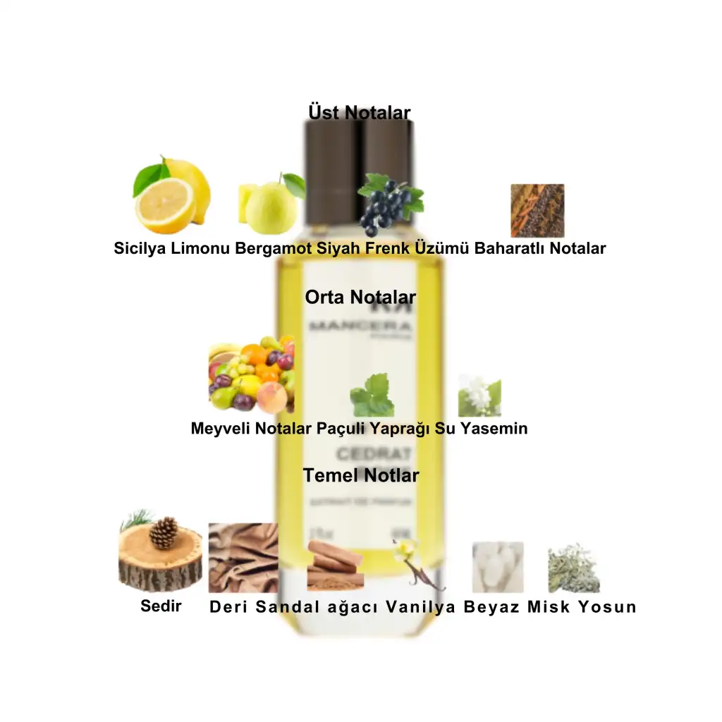 Cedrat Boise by Mancera, kadınlar ve erkekler için Narenciye Aromalı bir kokudur. Cedrat Boise 2011 yılında piyasaya sürüldü. Bu kokunun arkasındaki burun Pierre Montale'dir. Üst notalar Sicilya Limonu, Siyah Frenk Üzümü, Bergamot ve Baharatlı Notalardır; orta notalar Meyveli Notalar, Paçuli Yaprağı ve Su Yaseminidir; temel notalar Sedir, Deri, Sandal Ağacı, Vanilya, Beyaz Misk ve Yosundur.