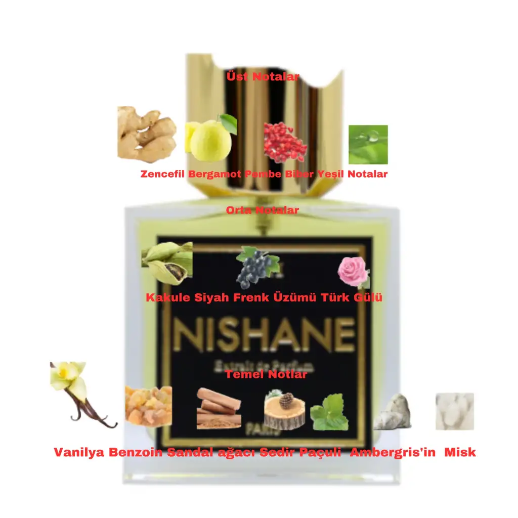 Ani by Nishane, kadınlar ve erkekler için Oryantal bir Çiçek kokusudur. Ani, 2019 yılında piyasaya sürüldü. Bu kokunun arkasındaki burun Cécile Zarokian'dır. Üst notalarda Zencefil, Bergamot, Pembe Biber ve Yeşil Notalar; orta notalarda Kakule, Siyah Frenk Üzümü ve Türk Gülü; temel notalarda Vanilya, Benzoin, Sandal Ağacı, Sedir, Paçuli, Kehribar ve Misk bulunur.