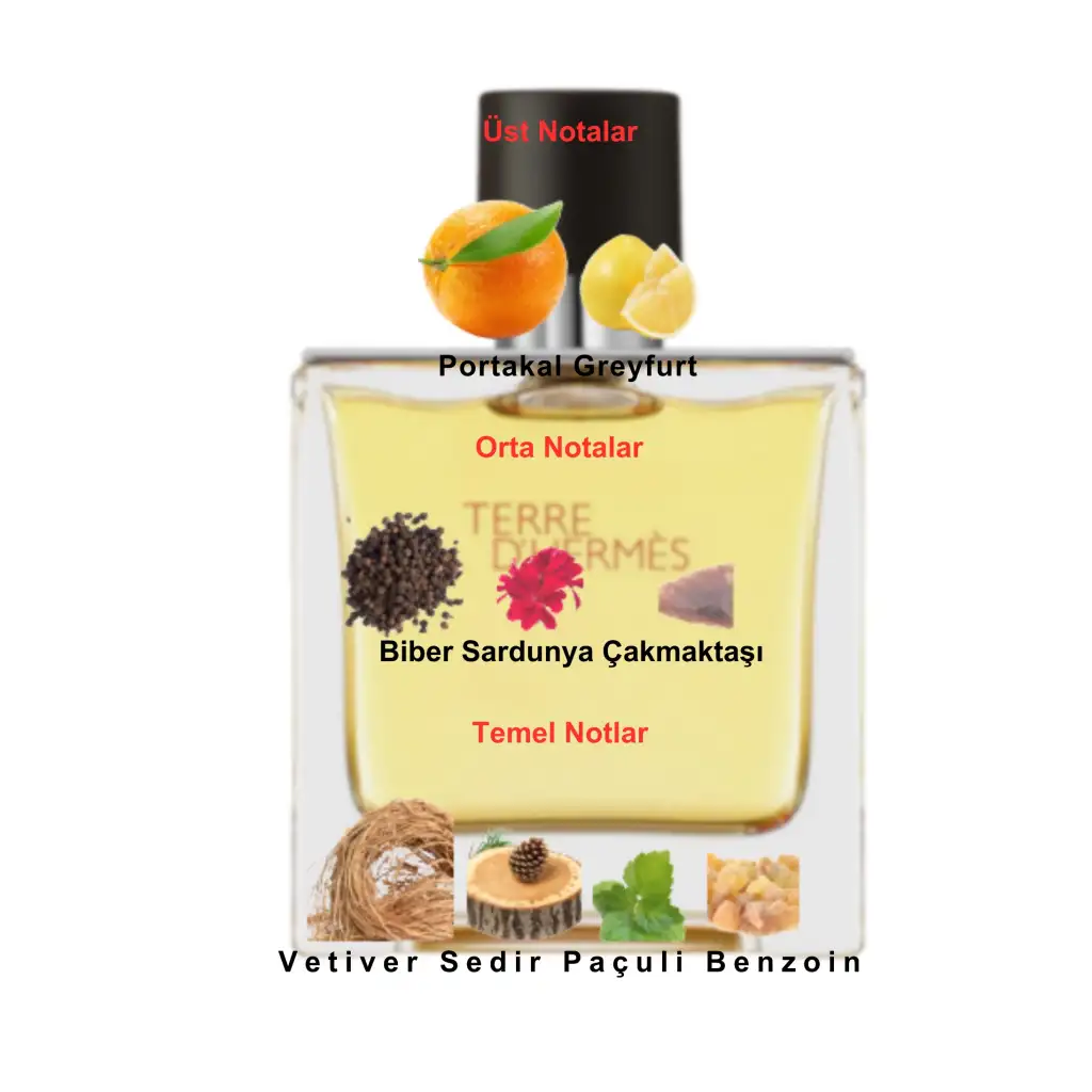 Terre d'hermès by Hermès, erkekler için Odunsu Baharatlı bir koku. Terre d'hermès 2006 yılında piyasaya sürüldü. Bu kokunun arkasındaki burun Jean-Claude Ellena'dır. Üst notalar Portakal ve Greyfurttur; orta notalar Biber, Sardunya ve Çakmaktaşıdır; temel notalar Vetiver, Sedir, Paçuli ve Benzoindir. Bu parfüm, 2007 Yılının Erkek Lüksünün FiFi Ödülü Kokusunun sahibidir.