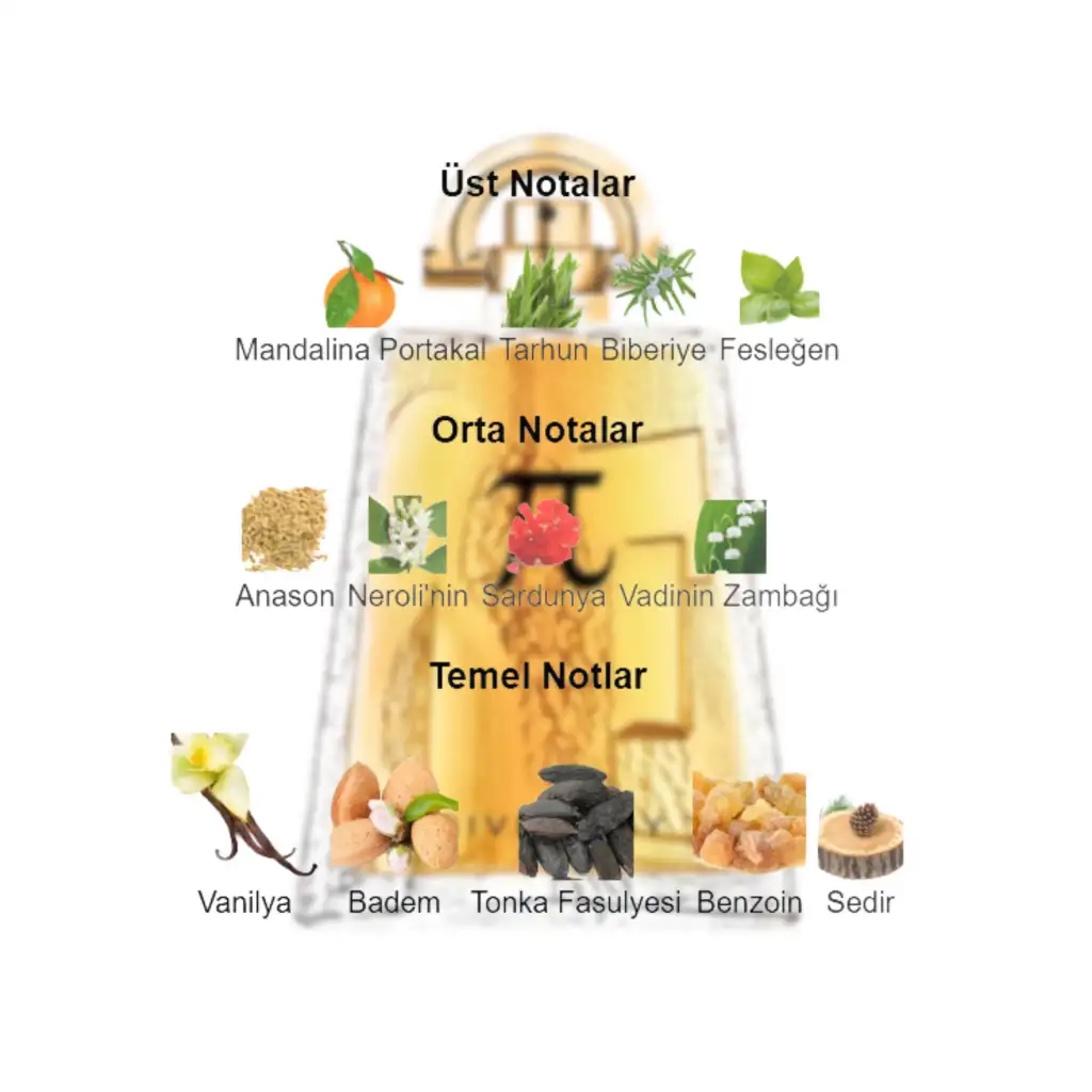 Pi by Givenchy, erkekler için Oryantal Odunsu bir koku. Pi 1998 yılında piyasaya sürüldü. Bu kokunun arkasındaki burun Alberto Morillas'tır. Üst notalar Mandalina, Tarhun, Biberiye ve Fesleğendir; orta notalar Anason, Neroli, Sardunya ve Vadi Zambağıdır; temel notalar Vanilya, Badem, Tonka Fasulyesi, Benzoin ve Sedirdir.