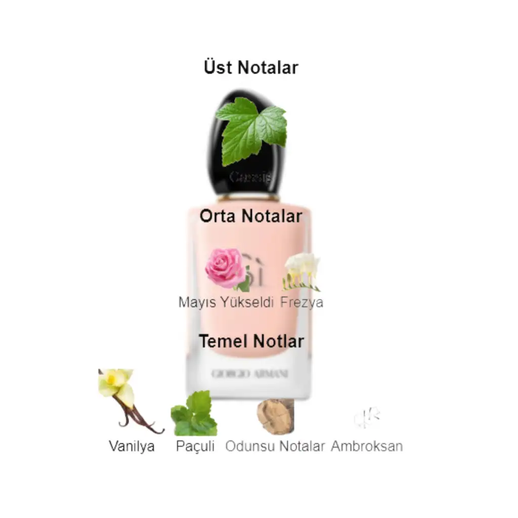 Si by Giorgio Armani, kadınlar için Şipre Meyveli bir koku. Sı 2013 yılında piyasaya sürüldü. Bu kokunun arkasındaki burun Christine Nagel'dir. Üst not Cassis; orta notalar Mayıs Gülü ve Frezya; temel notalar Vanilya, Paçuli, Odunsu Notalar ve Ambroksandır.