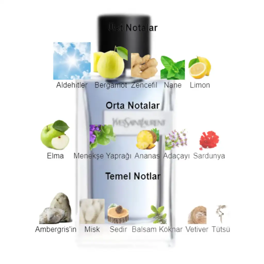Yves Saint Laurent'ten Y Eau de Parfum, erkekler için Aromatik bir Fougere kokusudur. Y Eau de Parfum 2018 yılında piyasaya sürüldü. Bu kokunun arkasındaki burun Dominique Ropion'dur. Üst notalar Elma, Zencefil ve Bergamottur; orta notalar Adaçayı, Ardıç Meyveleri ve Sardunyadır; temel notalar Kehribar, Tonka Fasulyesi, Sedir, Vetiver ve Olibanumdur.